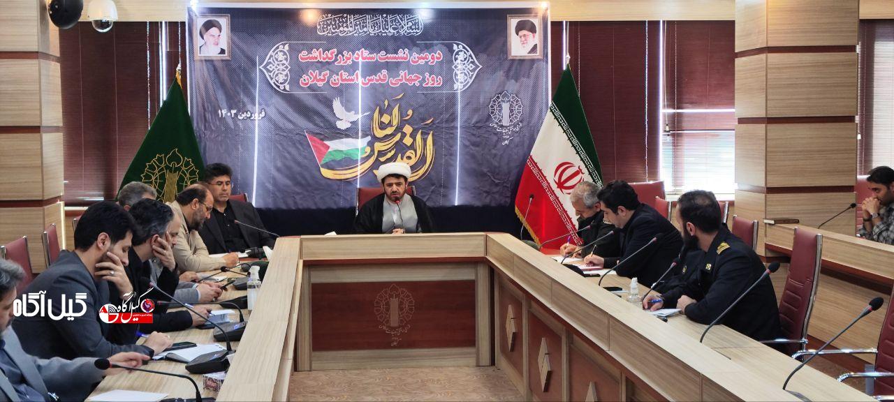 حجت الاسلام و المسلمین اشجری با بیان اینکه راهپیمایی روز جهانی قدس صبح جمعه ۱۷ فروردین در ۶۰ منطقه گیلان برگزار میشود، گفت: این راهپیمایی در تمامی شهرهای دارای نماز عبادی سیاسی جمعه به سوی میعادگاهها و همچنین در سایر شهرها و روستاهای دارای ظرفیت استان برگزار میشود.وی، شعار محوری روز جهانی قدس سال جاری را «طوفان الاحرار» اعلام کرد و افزود: برنامههای تبیینی و تبلیغی متنوعی در ستاد استانی به منظور بزرگداشت روز جهانی قدس برنامهریزی شده است.رئیس شورای هماهنگی تبلیغات اسلامی گیلان، ساعت آغاز راهپیمایی روز جهانی قدس در شهر رشت را ۱۰ صبح از مسیرهای سهگانه اعلام کرد و افزود: این راهپیمایی از مسیرهای «پیادهراه فرهنگی شهدای ذهاب (شهرداری)، خیابان امام خمینی (ره)، میدان فرهنگ، میدان مصلی»، «ورزشگاه شهید عضدی، خیابان نامجو، خیابان پرستار، میدان فرهنگ، میدان مصلی» و «سپاه پاسداران، میدان پاسداران، خیابان آزادگان، میدان فرهنگ، میدان مصلی» آغاز خواهد شد.وی با بیان اینکه «سردار حمیدرضا مقدمفر» مشاور فرهنگی و رسانهای فرمانده کل سپاه پاسداران انقلاب اسلامی سخنران راهپیمایی روز جهانی قدس مرکز استان خواهد بود، گفت: این راهپیمایی با اقامه نماز عبادی سیاسی جمعه به امامت «آیتالله رسول فلاحتی» نماینده ولی فقیه در استان و امام جمعه رشت به پایان خواهد رسید.