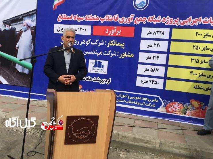 نماینده عالی دولت در گیلان افزود: در این راستا برای رفع آلودگیها، هشت کیلومتر از حدود ۱۰ کیلومتر پروژه جمعآوری فاضلاب فخب رشت تا کنون به پایان رسیده و از امروز پروژه جمعآوری فاضلاب منطقه سیاه اسطلخ اجرایی شدهاست.