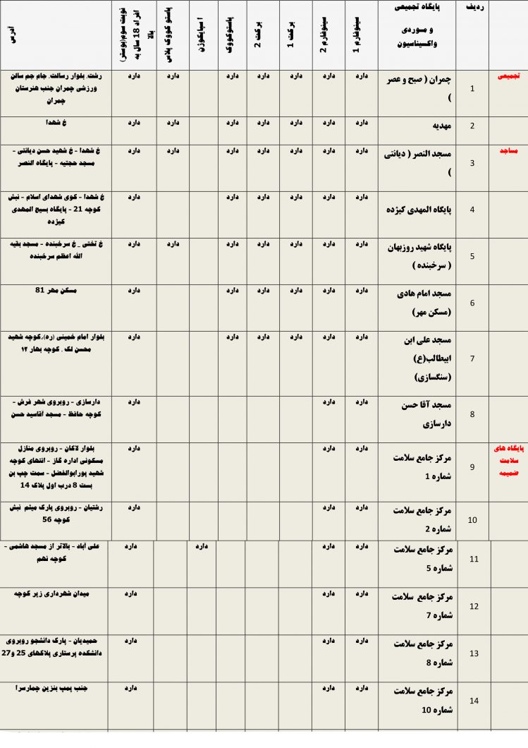 به گزارش پایگاه خبری و تحلیلی گیل آگاه؛ لیست مراکز واکسیناسیون شهرستان رشت روز شنبه مورخ ۲۵ دی ماه ۱۴۰۰ به شرح زیر می باشد.