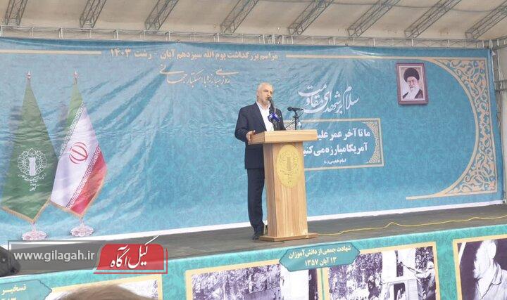 به گزارش پایگاه خبری و اطلاع رسانی گیل آگاه، سعید اوحدی صبح یکشنبه در اجتماع راهپیمایی ۱۳ آبان مردم گیلان در میدان شهدای ذهاب رشت اظهار کرد: شهدا مظهر اقتدار و عزتمندی نظام اسلامی هستند.