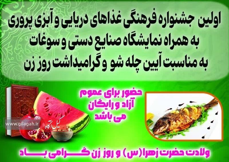 به گزارش پایگاه خبری و اطلاع رسانی گیل آگاه، مدیرکل میراث فرهنگی ، گردشگری و صنایع دستی گیلان ، گفت: اولین جشنواره فرهنگی غذاهای دریایی و آبزی پروری به همراه نمایشگاه صنایعدستی و سوغات با اجرای برنامههای متنوع فرهنگی، به مناسبت آیین چله شو و گرامیداشت روز زن در شهرستان خمام برگزار میشود. ولی جهانی افزود: علاقهمندان میتوانند برای حضور در این جشنواره فرهنگی جمعه ۳۰ آذر از ساعت ۱۴ تا ۱۸ و ۳۰ دقیقه به بازار الگویی ماهیفروشان ایران در روستای مصردشت خمام مراجعه کنند.