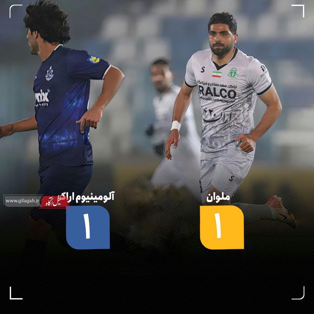 به گزارش پایگاه خبری و اطلاعرسانی گیل آگاه، تیمهای فوتبال ملوان و آلومینیوم اراک عصر جمعه در هفته چهاردهم رقابتهای لیگ برتر کشور در ورزشگاه زنده یاد سیروس قایقران بندرانزلی مقابل هم قرار گرفتند که در نهایت این بازی با نتیجه مساوی یک بر یک خاتمه یافت.