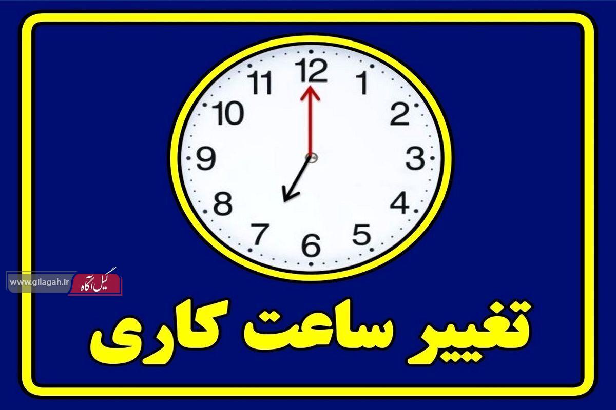به گزارش پایگاه خبری و اطلاعرسانی گیل آگاه، استانداری گیلان اعلام کرد: از فردا اول اسفند ماه، ساعات کاری ادارات استان به روال قبل ۷:۳۰ تا ۱۴:۳۰ باز میگردد و فعالیت دستگاهها و ادارات در روزهای پنج شنبه هم برقرار است.