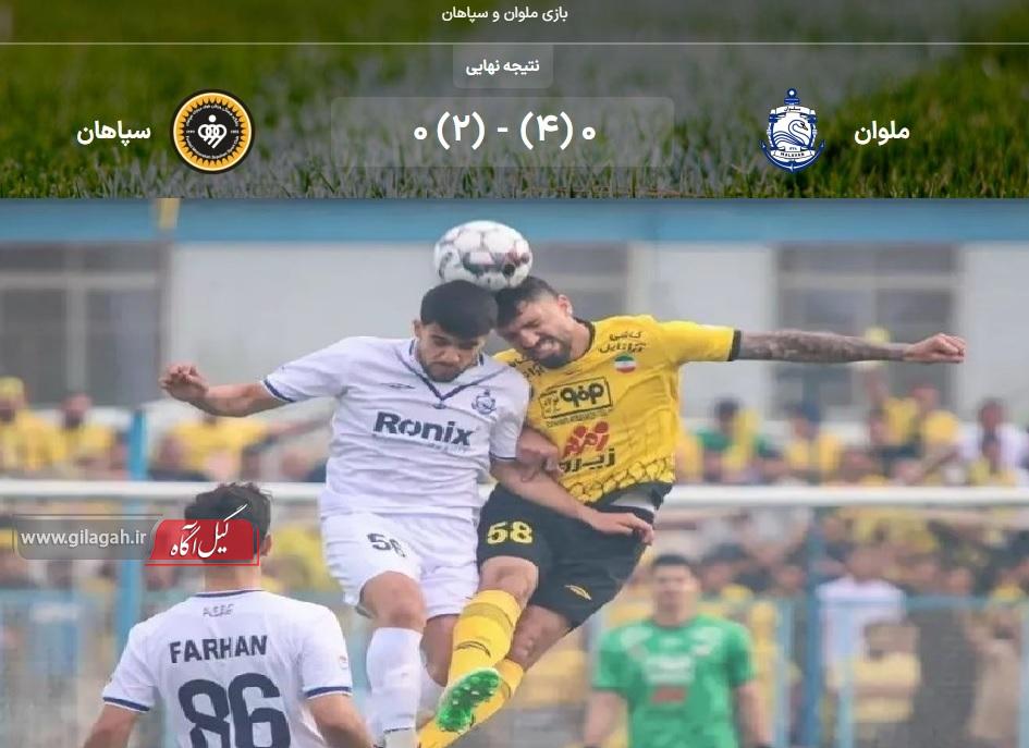 به گزارش پایگاه خبری و اطلاع رسانی گیل آگاه، در چهارچوب مرحله یک چهارم نهایی جام حذفی فوتبال باشگاههای کشور یادواره آزادسازی خرمشهر تیم فوتبال ملوان بندرانزلی عصر امروز در ورزشگاه زنده یاد سیروس قایقران این شهر به مصاف تیم سپاهان اصفهان رفت که این دیدار در ضربات پنالتی با نتیجه ۴ بر ۲ به نفع تیم ملوان به پایان رسید.