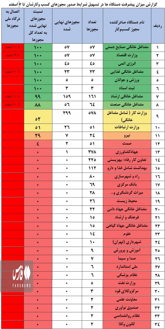 براساس آخرین اطلاعاتی که به فارس رسیده وضعیت عملکرد دستگاهها برای بهبود صدور مجوزهای کسب وکار تشریح شده است.