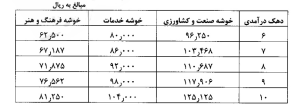 این تعرفهها برای ۵ دهک پردرآمد کشور (دهکهای ۶ تا ۱۰) به ازای هر «نفر-ساعت» تعیین شده که به شرح زیر است: