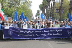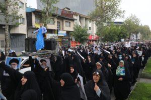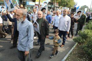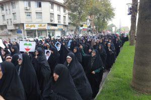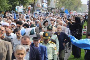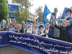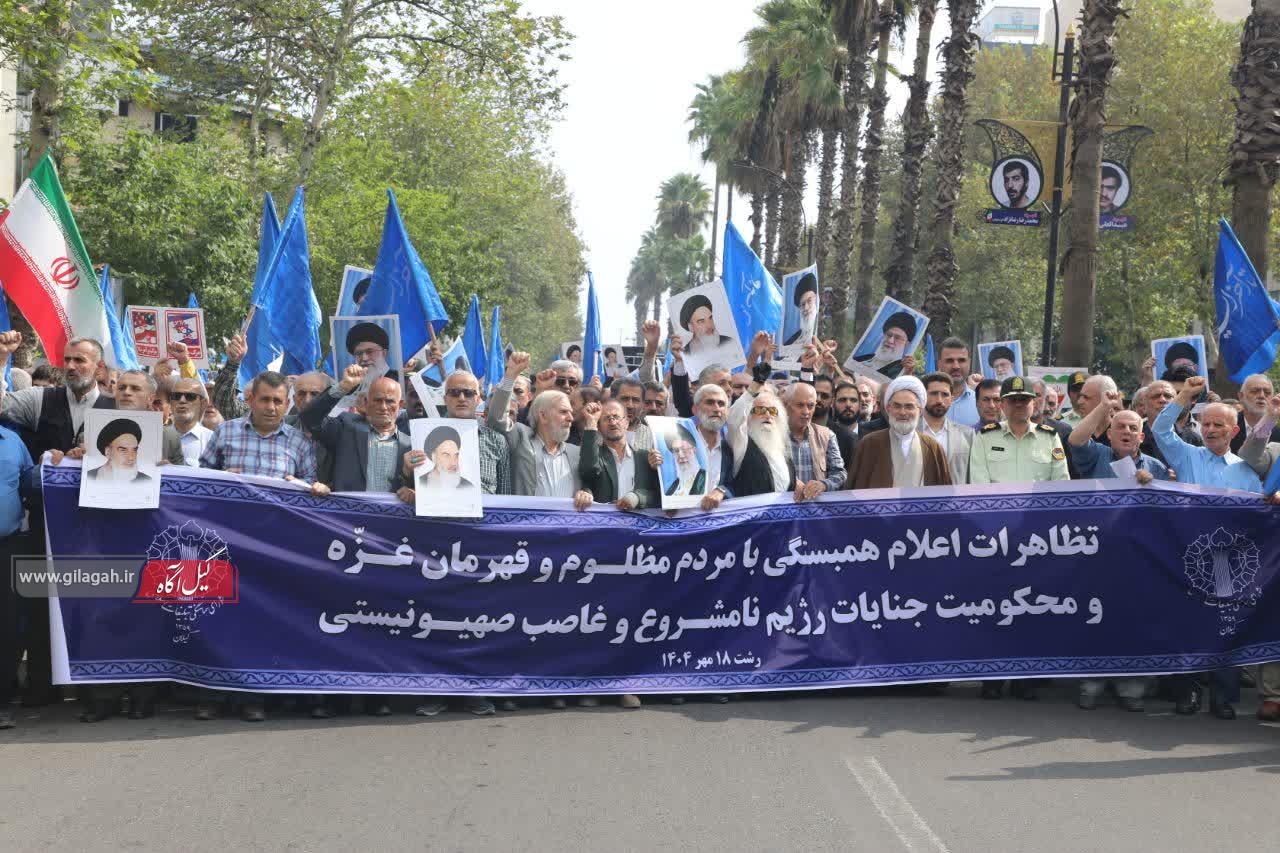 صدای شعارهای کوبنده “مرگ بر آمریکا” و “مرگ بر اسرائیل” که با دستنوشتهها و پلاکاردهایی در محکومیت جنایات همراه بود، فضای شهرهای گیلان را پر از خشم مقدس ساخت.