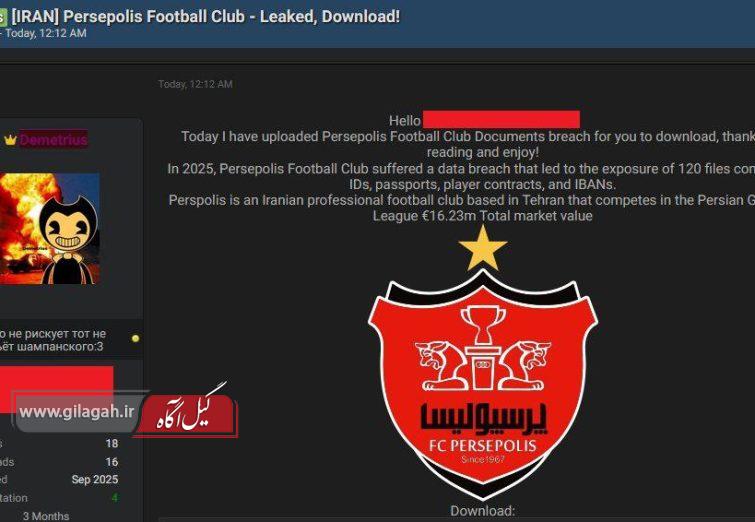 پایگاه خبری و اطلاع رسانی گیل آگاه، شب گذشته گزارشهایی مبنی بر اینکه یک گروه هکری اسنادی منتسب به باشگاه پرسپولیس را هک و منتشر کرده است؛ موضوعی که تاکنون از سوی باشگاه پرسپولیس بهصورت رسمی تأیید نشده است.