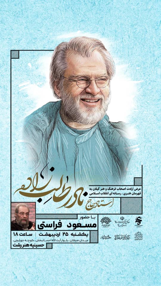 به گزارش پایگاه خبری و اطلاع رسانی گیل آگاه به نقل از روابط عمومی اداره کل فرهنگ و ارشاد اسلامی گیلان، مراسم گرامیداشت مرحوم نادر طالب زاده، هنرمند پیشکسوت جبهه انقلاب فرهنگی روز یکشنبه ۲۵ اردیبهشت ساعت ۱۸ با حضور مسعود فراستی در حسینیه هنر رشت برگزار می شود .