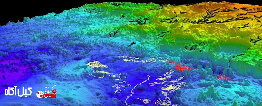 محققان توانستهاند بیش از ۶۵۰۰ کیلومتر از پشتههای رودخانهای را ترسیم کنند که ظاهراً توسط رودخانهها تراشیده شدهاند و نشان میدهد که به احتمال زیاد دلتاهای رودخانهای فرسایشیافته یا کمربندهای کانال زیردریایی (کانالهای حکشده در کف دریا) هستند.
