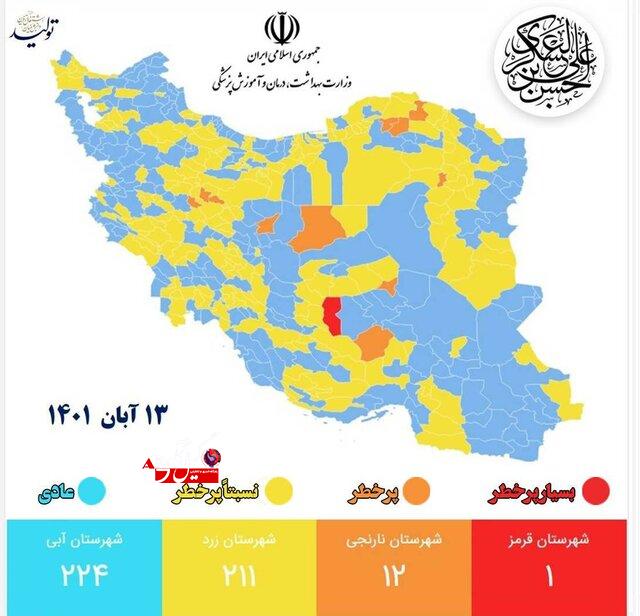 به گزارش پایگاه خبری و اطلاع رسانی گیل آگاه به نقل از ایسنا بر اساس اعلام مرکز روابط عمومی و اطلاع رسانی وزارت بهداشت، بر اساس آخرین به روز رسانیها، تعداد شهرهای با وضعیت قرمز از ۳ به ۱ و تعداد شهرهای با وضعیت نارنجی نیز از ۱۷ به ۱۲ شهر کاهش یافت.