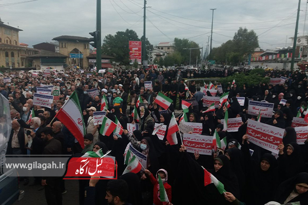 به گزارش پایگاه خبری و اطلاع رسانی گیل آگاه، نمازگزاران گیلانی در محکومیت حرکت دردمنشانه و شنیع عوامل استکبار جهانی، داعش خبیث، در تجاوز به حریم اهل بیت علیهم السلام و به شهادت رساندن زائران و مجاوران حرم مطهر احمد بن موسی (ع) بعد از اقامه نماز پرصلابت جمعه تجمع کردند.نمازگزاران با سر دادن شعار مرگ بر آمریکا، سکوت هر مسلمان خیانت است به قرآن، فریاد امت ماست، فهم ودرایت ماست، حامی اغتشاشگر، جانی آدم کش است، مرگ برفتنه گر، این خشم ملت ماست، نشان وحدت ماست، کلام غیرت ماست صدای نفرت ماست ضمن محکومیت این حادثهی تروریستی اعلام کردند: ملت بصیر ایران با اتحاد و همبستگی مقابل اقدامات وحشیانه تروریستها ایستاده اند.این اجتماع در شهر رشت پس از اقامه نماز جمعه در میدان مصلای این شهر برگزار شد.