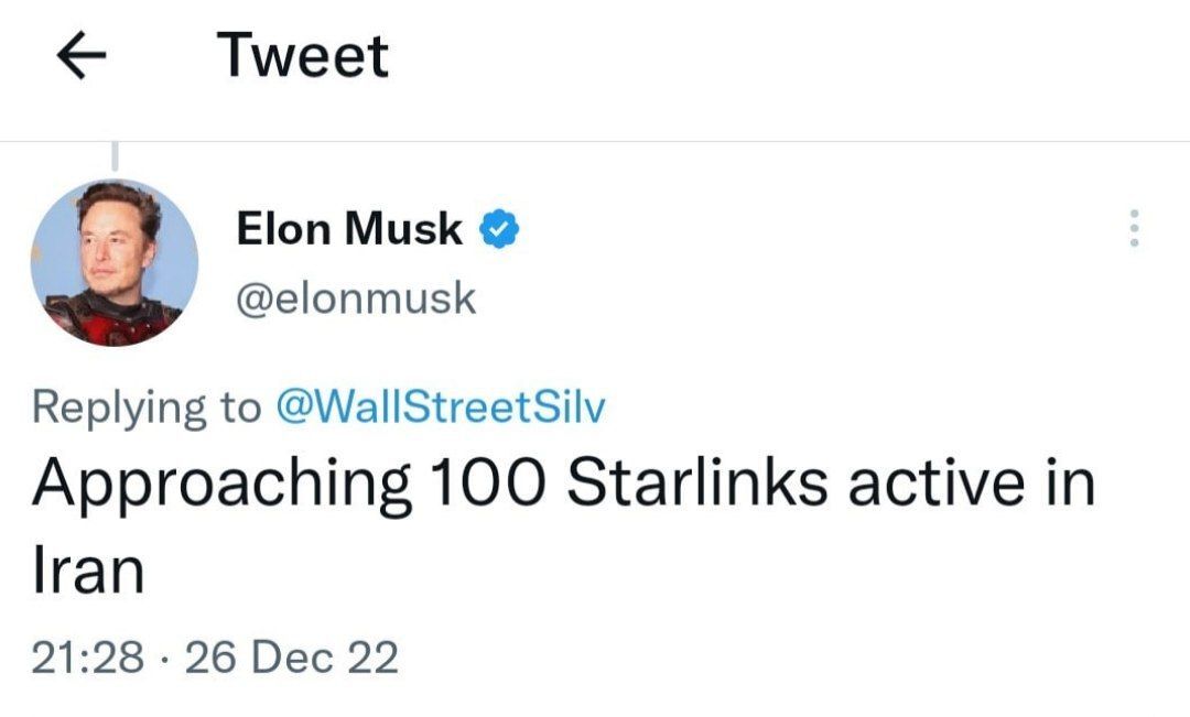ایلان ماسک، مالک شرکت اسپیساکس در توییتر نوشت حدود ۱۰۰ عدد از دستگاههای استارلینک موجود در ایران فعال شده است.