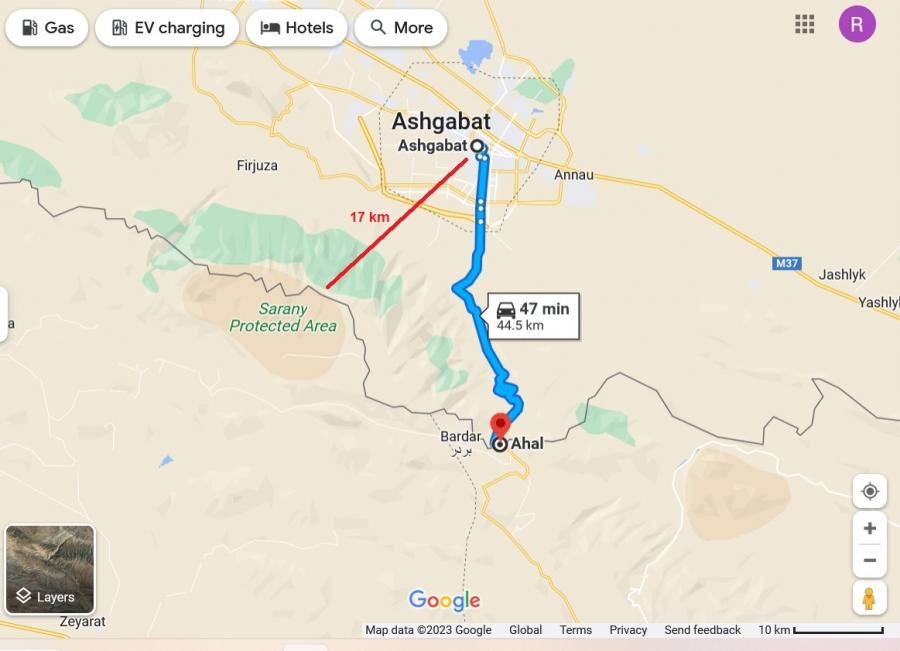 فاصله شهر عشق آباد پایتخت ترکمنستان با مرز ایران ۱۷ کیلومتر است. جاده ای به طول ۴۵ کیلومتر، عشق آباد را به گذرگاه مرزی ایران متصل می کند.