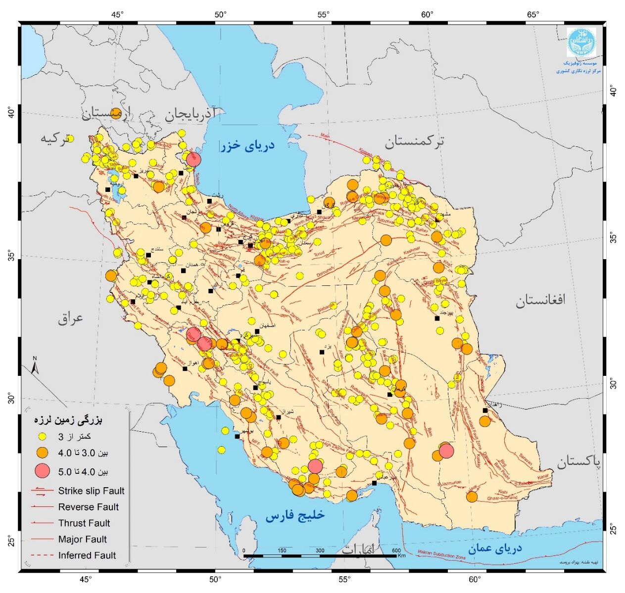 از لحاظ آماری ۴۶۵ زمینلرزه با بزرگی کوچکتر ۳، تعداد ۶۱ زمینلرزه با بزرگی بین ۳و۴، و تعداد ۵ زمینلرزه با بزرگی بین ۴ و ۵ بوده است.