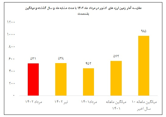 آمار زمینلرزههای کشور در مردادماه ۱۴۰۲ در مقایسه با مدت مشابه سال گذشته و میانگین ماهانه ۱۰ سال اخیر
