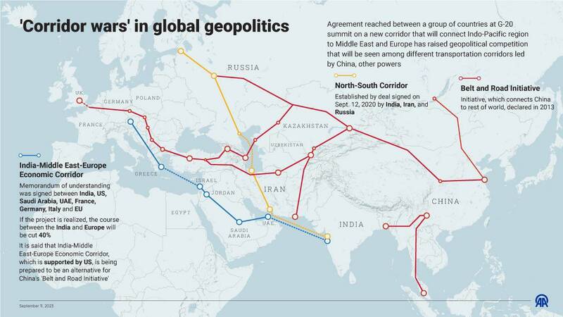 پس از نشست اخیر گروه ۲۰ و اعلام راهاندازی کریدور هند-خاورمیانه- اروپا، نبرد کریدورها برای کسب بیشترین سهم از تجارت جهانی افزایش یافته است.